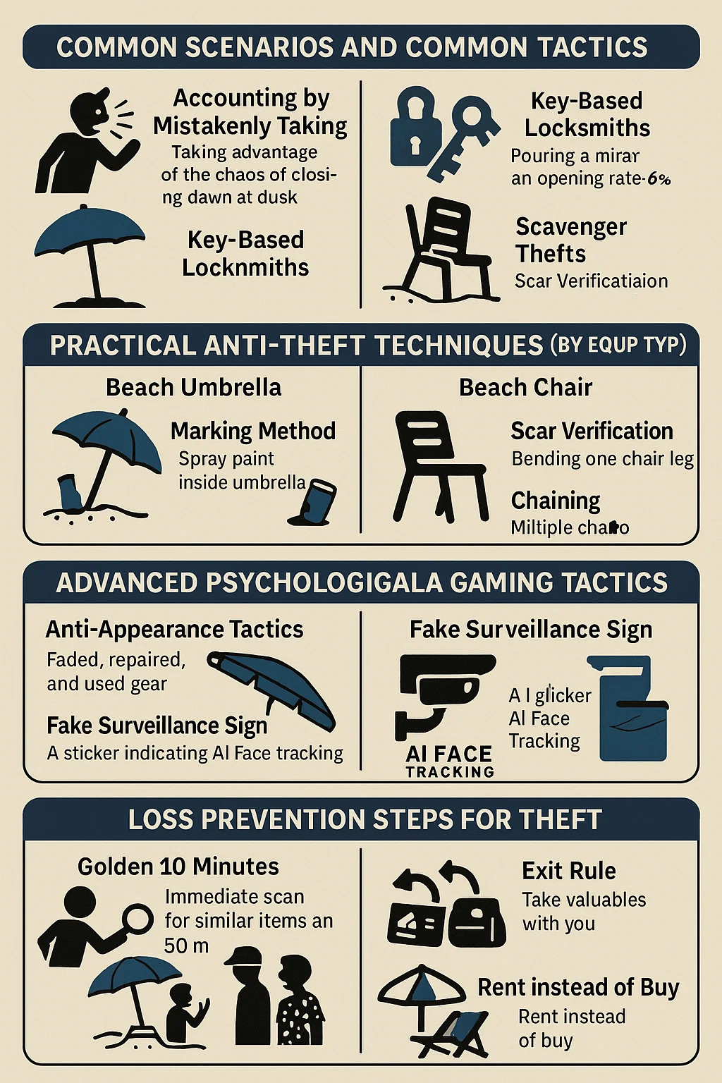 Ya, kecurian payung pantai Dan kerusi adalah masalah biasa di tepi pantai. Berikut adalah strategi tindak balas bertingkat berdasarkan pengalaman pengurus pantai dan pelawat biasa: