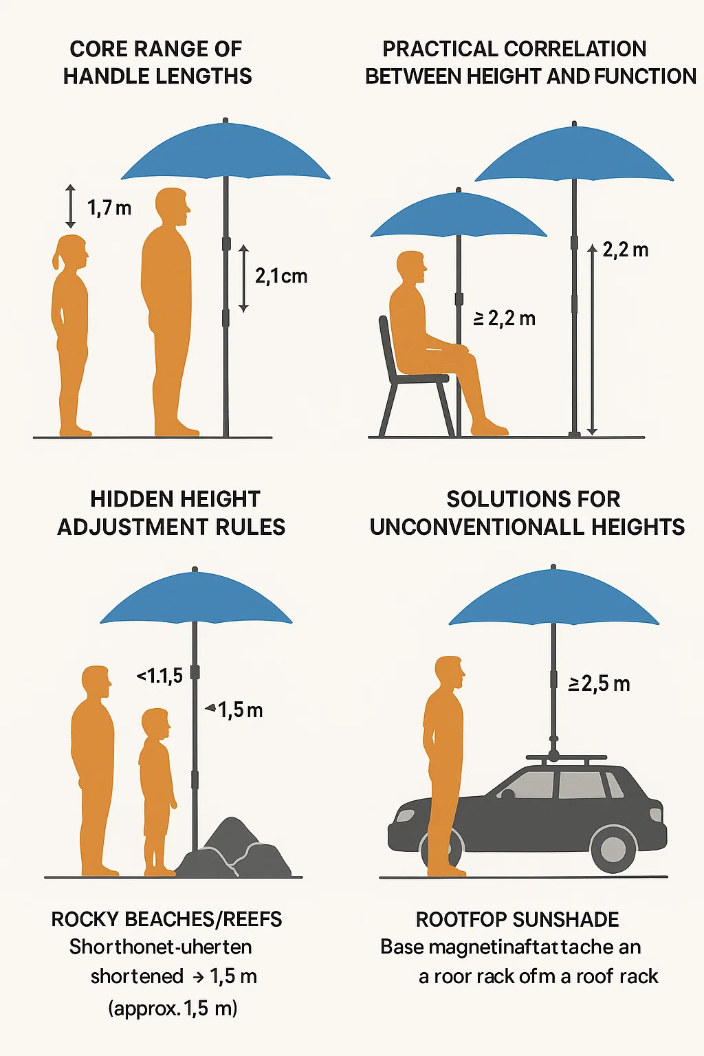 Berikut adalah analisis praktikal mengenai payung pantai Ketinggian, berdasarkan senario penggunaan biasa dan prinsip reka bentuk ergonomik: