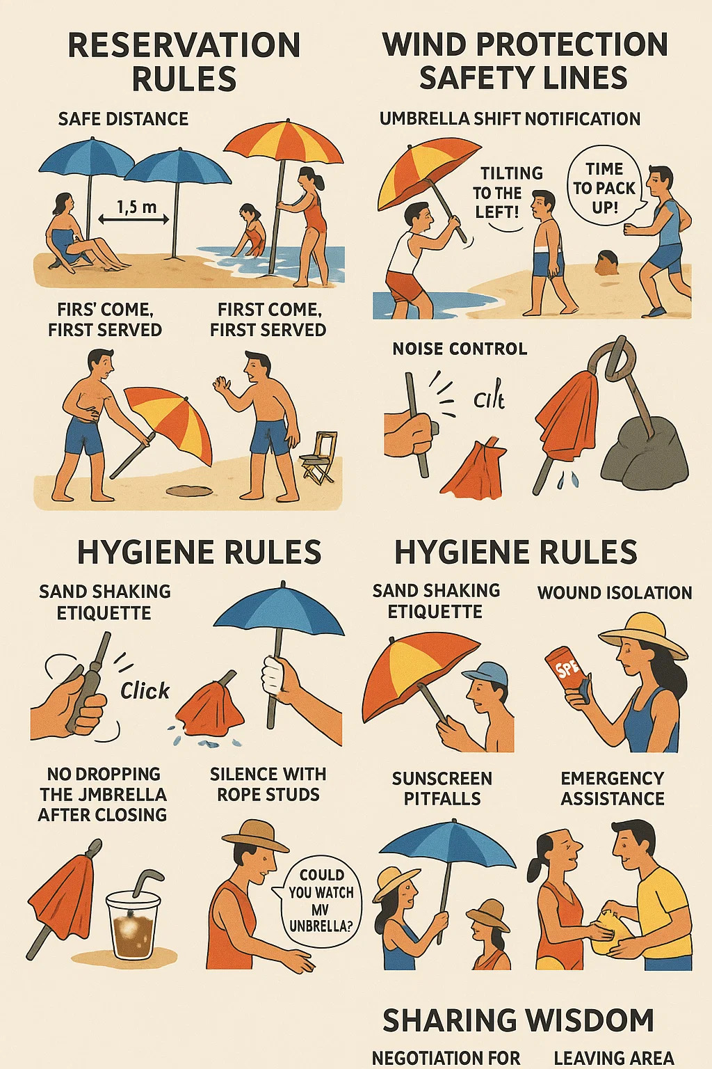 Berikut adalah beberapa peraturan yang tidak diucapkan untuk digunakan payung pantai :